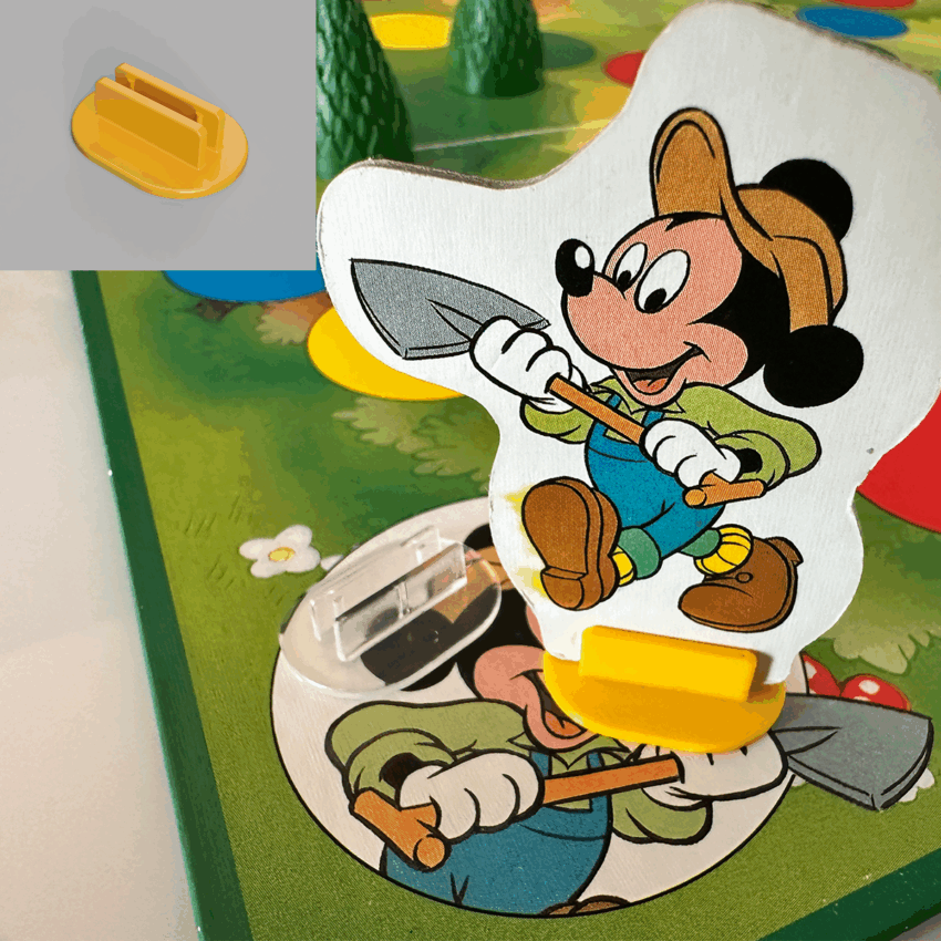 Reverse-engineered a player placeholder piece for a Disney board game. In the top-left corner, you can see a render of the recreated piece. The other image shows a side-by-side comparison between the original transparent version and the new yellow replacement.